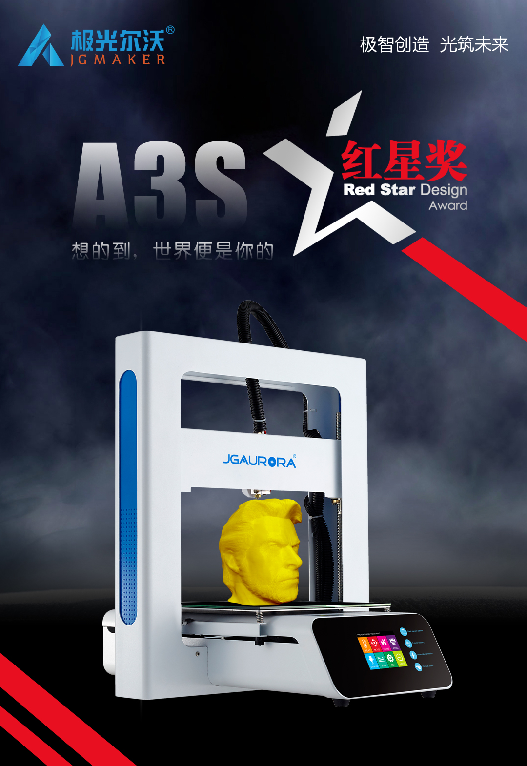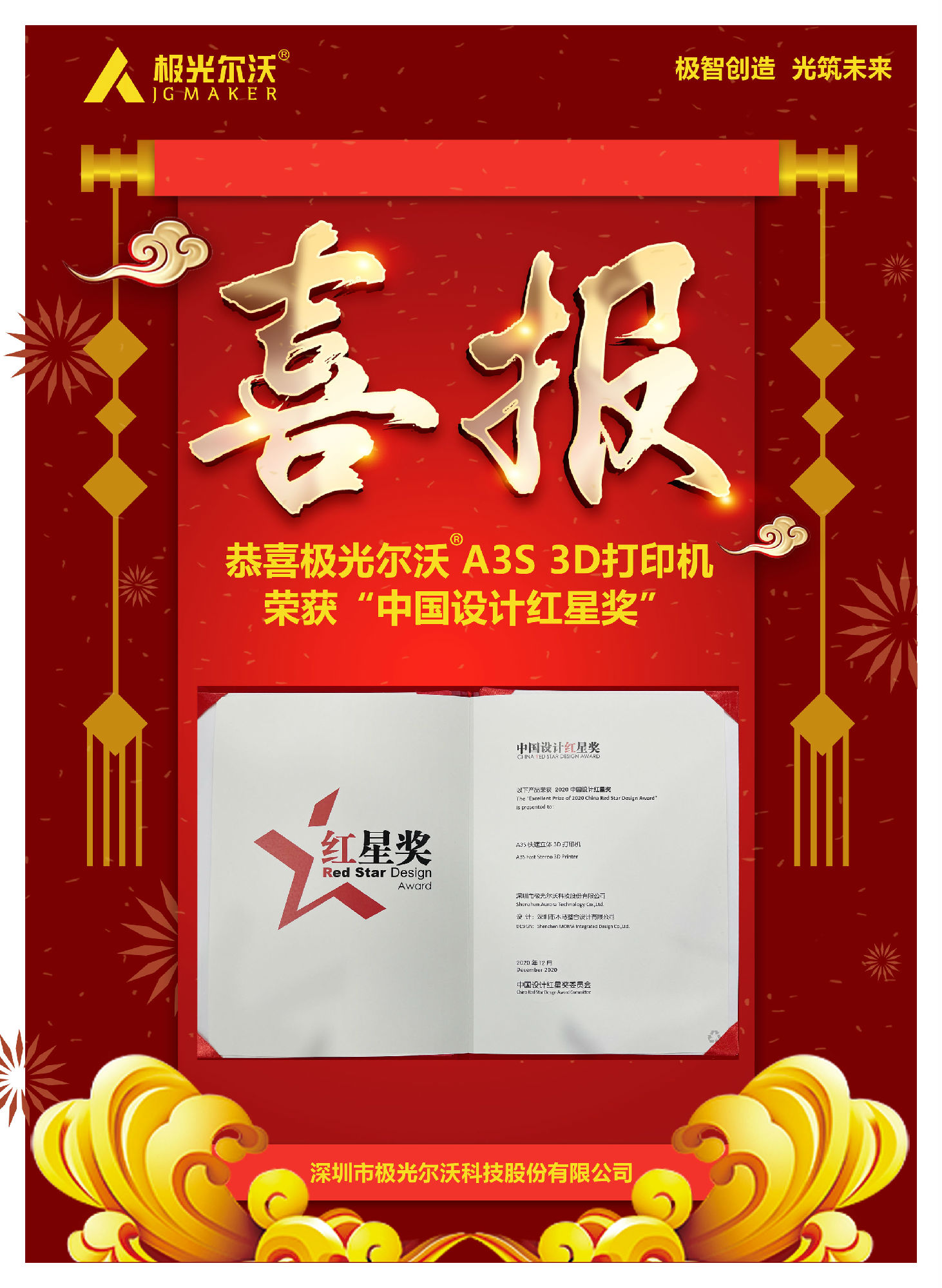 12月9日,2020中國設計紅星獎頒獎活動在北京舉行。2020年中國設計紅星獎以"融合的時代 凝聚的力量"為主題,來自全球5000家企業(yè)的7000余件產(chǎn)品參與角逐。極光爾沃A3S 3D打印機憑借新穎獨特的設計理念、簡潔純粹的產(chǎn)品形象從眾多產(chǎn)品中脫穎而出,獲得評委一致青睞,一舉拿下2020中國設計紅星獎。