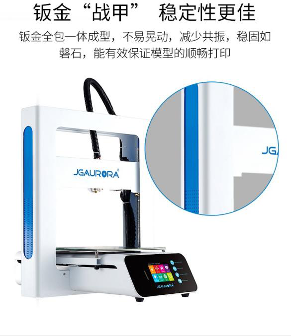 3D打印機是一種新興制造工具,而工具本身的根本要求是能經(jīng)受長期使用、能保證穩(wěn)定的產(chǎn)出質(zhì)量。在市場上桌面級3D打印機不??刂瞥杀緯r,極光爾沃仍然堅持質(zhì)量第一的標準,機身采用了一體鈑金制造,9kg的全重是品質(zhì)的直觀表現(xiàn)。潔白機身與品牌藍調(diào)點綴,造就大氣的高雅外觀。多功能觸控系統(tǒng)操作便捷。干練的造型體現(xiàn)出極簡的科技最終追求。專業(yè)化的工業(yè)外觀設計,傳遞出有情感,有品味,科技向上的品牌態(tài)度。