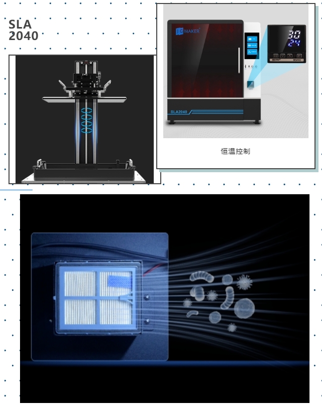 伺服電機(jī)控制系統(tǒng)搭配的精密滾珠絲桿,有效降低打印過程中產(chǎn)生的噪音,真正實現(xiàn)靜音打印。同時,SLA 2040還內(nèi)置了多層空氣過濾網(wǎng),有效凈化打印環(huán)境和料池樹脂異味,讓打印環(huán)境更舒適干凈!