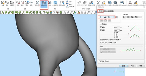 ③在功能頁上,可選擇設(shè)置倒角,即將尖銳的切割角去銳化,也設(shè)置間隙,以方便后期拼合。另外有一個(gè)比較重要的功能,即“鎖定多段線”,由于模型和切割線并不是保持不變相對位置,而是可調(diào)整的,所以這個(gè)的功能的開啟和關(guān)閉能改變不同的切割線固定方式,以方便調(diào)整模型角度切割。