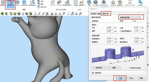 ④調(diào)整好后點(diǎn)擊“應(yīng)用”即可沿著切割線把模型切割開了。