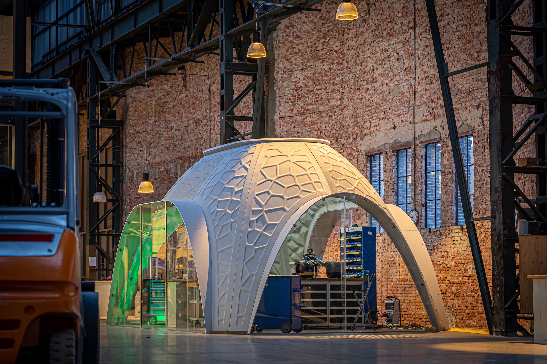 △為鹿特丹創(chuàng)客區(qū)設(shè)計(jì)的3D打印模塊化工作空間。圖片來自ARCHITECH公司。