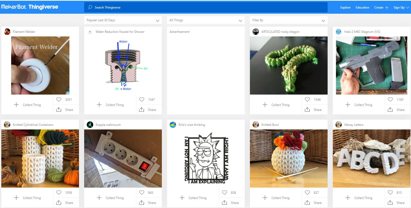Thingiverse上傳的模型已經(jīng)超過100萬個,下載量更是達(dá)到2億之多。