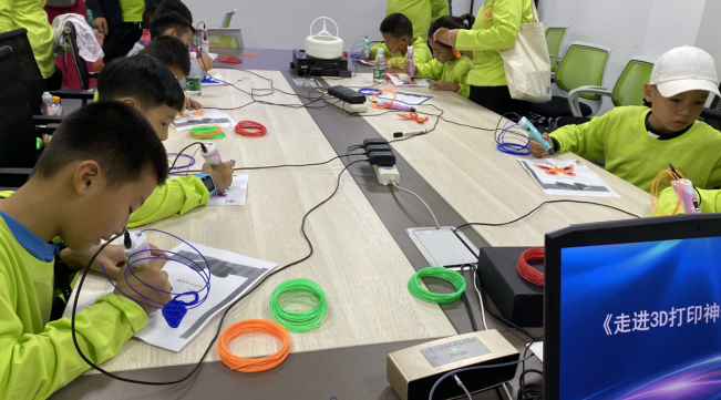 接下來的環(huán)節(jié)中,李老師帶領(lǐng)學(xué)生們進(jìn)行3D打印筆的教學(xué)。通過幾分鐘的介紹,學(xué)生們就能快速上手操作3D打印筆進(jìn)行繪畫了。小編不得不感嘆學(xué)生們的動(dòng)手能力真強(qiáng),能夠又快又好地完成作品。
