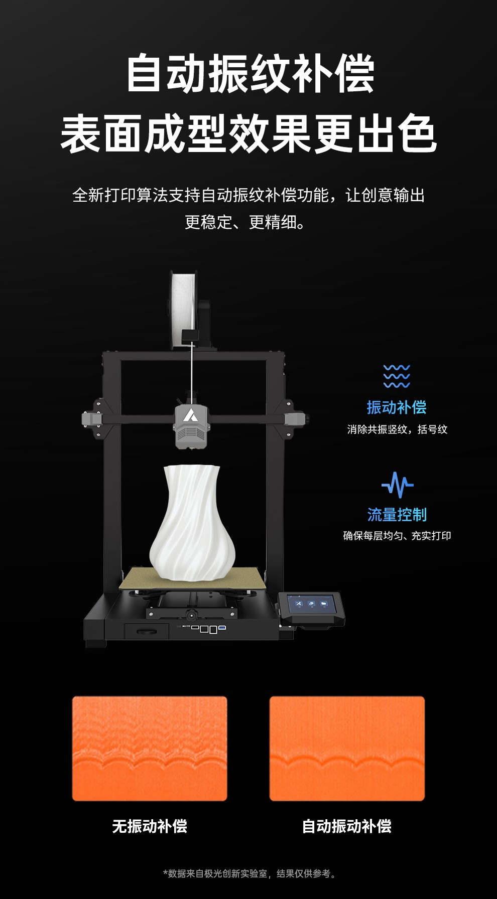 300*300*350mm最大成型空間·9.5倍放大擠出,使出料更均勻,成型更出色,搭載智能風(fēng)扇控制系統(tǒng),讓高達(dá)8500r/min的轉(zhuǎn)速降低噪音,還可以模型散熱更全面的同時(shí)高速打印