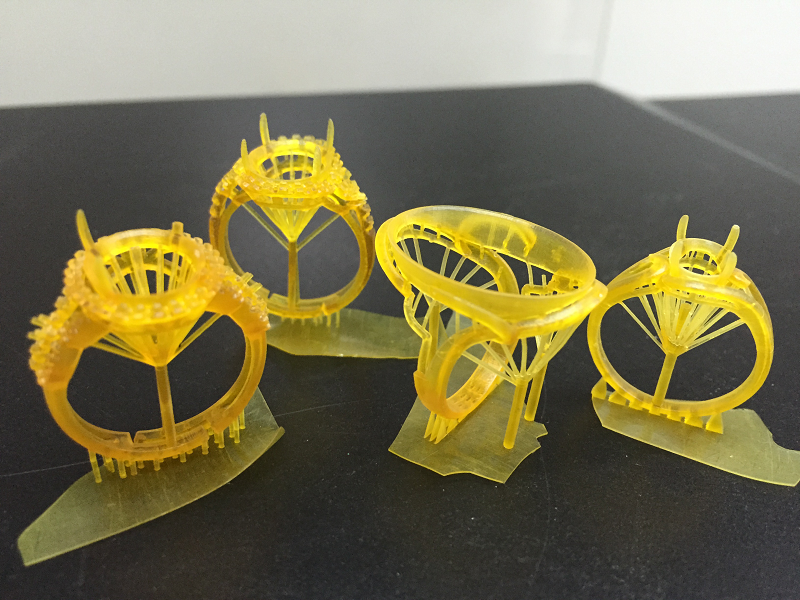 高深點(diǎn)講,光敏樹(shù)脂是由光引發(fā)劑,單體聚合物與預(yù)聚體組成的混合物,這種材料可在特定波長(zhǎng)紫外光聚焦下完成固化,一般用于SLA/DLP機(jī)型之中。使用光敏樹(shù)脂材料打印出來(lái)的物品,表面較為光滑、成型質(zhì)量高,所以許多DLP機(jī)型被定為珠寶級(jí)別。